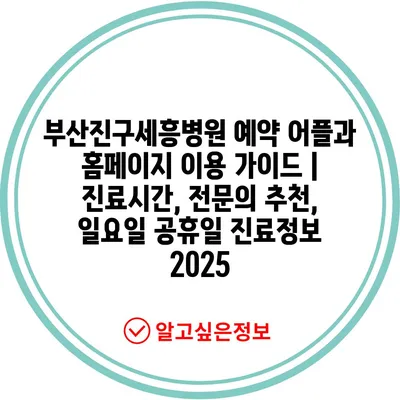 부산진구세흥병원 예약 어플과 홈페이지 이용 가이드 | 진료시간, 전문의 추천, 일요일 공휴일 진료정보 2025