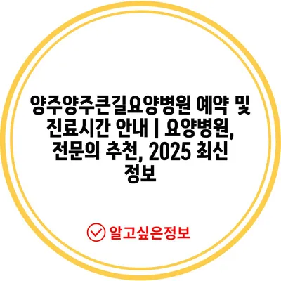 양주양주큰길요양병원 예약 및 진료시간 안내 | 요양병원, 전문의 추천, 2025 최신 정보