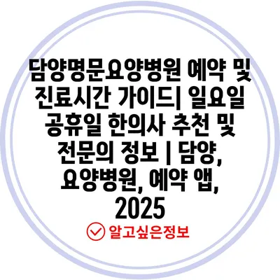 담양명문요양병원 예약 및 진료시간 가이드| 일요일 공휴일 한의사 추천 및 전문의 정보 | 담양, 요양병원, 예약 앱, 2025
