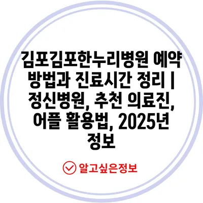 김포김포한누리병원 예약 방법과 진료시간 정리 | 정신병원, 추천 의료진, 어플 활용법, 2025년 정보