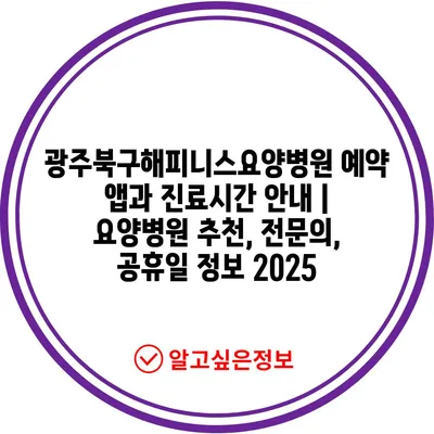 광주북구해피니스요양병원 예약 앱과 진료시간 안내 | 요양병원 추천, 전문의, 공휴일 정보 2025