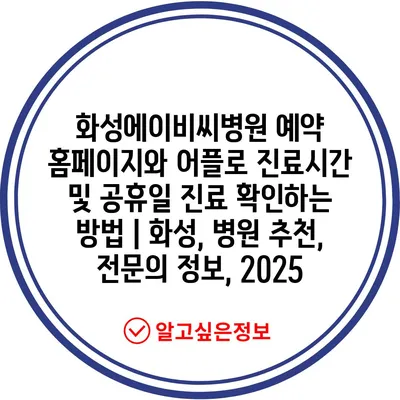 화성에이비씨병원 예약 홈페이지와 어플로 진료시간 및 공휴일 진료 확인하는 방법 | 화성, 병원 추천, 전문의 정보, 2025