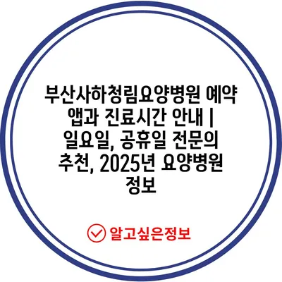 부산사하청림요양병원 예약 앱과 진료시간 안내 | 일요일, 공휴일 전문의 추천, 2025년 요양병원 정보