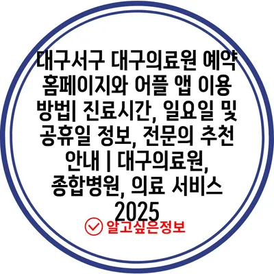 대구서구 대구의료원 예약 홈페이지와 어플 앱 이용 방법| 진료시간, 일요일 및 공휴일 정보, 전문의 추천 안내 | 대구의료원, 종합병원, 의료 서비스 2025