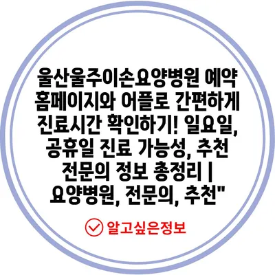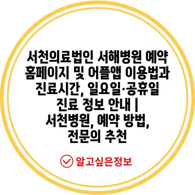서천의료법인 서해병원 예약 홈페이지 및 어플앱 이용법과 진료시간, 일요일·공휴일 진료 정보 안내 | 서천병원, 예약 방법, 전문의 추천